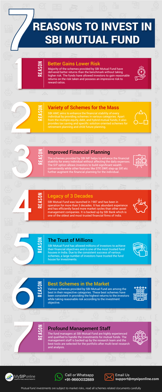 Checkout top reasons to invest in SBI Mutual Funds online that will helps you to plan your future. Invest in top SBI schemes according to your financial requirement under guidance of expert team at MySIPonline